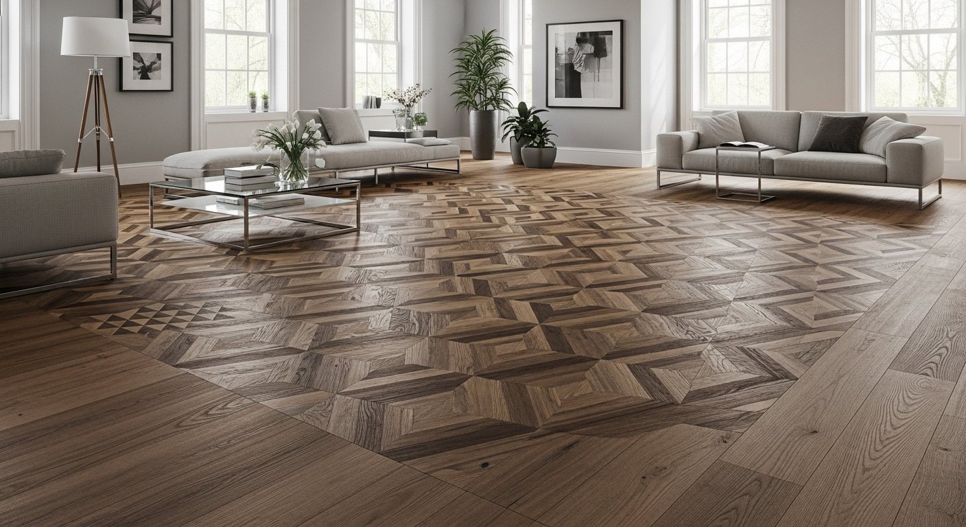 Patterned hardwood, especially herringbone and chevron designs, brings a level of custom sophistication that flat plank floors often can’t match. These patterns have their roots in European design but fit seamlessly in ultra-modern, transitional, or even rustic spaces. The herringbone pattern utilizes rectangular boards arranged in a classic zigzag. In contrast, the chevron pattern employs boards cut at an angle to achieve a continuous, pointed “V” effect across the floor. Both provide a sense of movement and depth, turning your floor into a work of art. While these layouts require more expertise and time to install, they’re sure to become the focal point of any room, imparting a blend of heritage and modernity in equal measure.